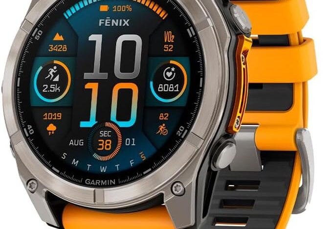 Garmin fēnix® 8 – 51 mm, AMOLED, Sapphire, Premium Multisport GPS Smartwatch, Long-Lasting Battery Life, Dive-Rated, Built-in LED Flashlight, Titanium with Spark Orange/Graphite Band