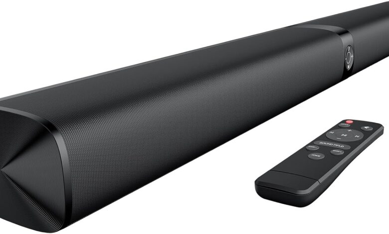 Sound Bar for Smart TV, Soundbar with Bluetooth/ARC/Opt/AUX Connect, Auto Volume Boost, 3 Equalizer Modes, 2 in 1 Detachable Soundbar for TV/PC/Gaming/Projectors